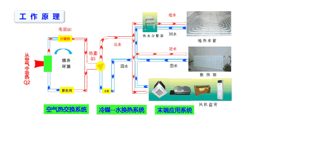 空氣源熱泵從原理上說, 生活中常見的冰箱也是一種熱泵, 夏天冰箱里面是4-7度, 外面是30-35度, 當(dāng)我們把一盤熱菜放進(jìn)冰箱時(shí),菜里面的熱量散發(fā)到冰箱里面的冷空氣中,冰箱里面的機(jī)器開始工作,把里面冷空氣里面的熱量搬到外面的空氣里面來,這樣不斷的工作, 冰箱里面才能維持一個(gè)恒定的溫度,當(dāng)我們用手摸冰箱的側(cè)面或后面時(shí),會(huì)有點(diǎn)微微的熱, 這就是冰箱在進(jìn)行熱量的搬運(yùn)!